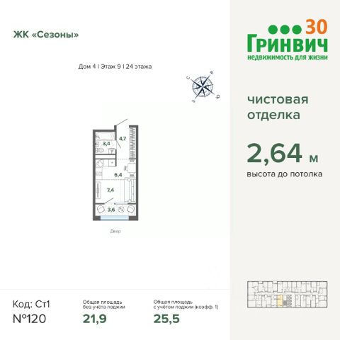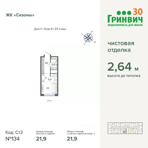 Продаётся студия в строящемся доме (Дом 4), срок сдачи: I-кв. 2026, общей площадью 21.9 кв.м., на 9 этаже. Квартира от застройщика Квартиры разработаны для разных целей и разного состава семей, сделали так, чтобы каждый квадратный метр стал не просто площадью, а функциональной частью комнаты. Внутри каждой будет свой, неповторимый вид из окна, которым могут похвастаться, единицы. Комнаты — залиты естественным светом. Расположение ЖК связывающей центр Екатеринбурга и Уктусские горы. Вокруг природа, базы отдыха, нет массивной жилой застройки. Рядом магистральная улица Щербакова и Объездная дорога, которые позволят добраться куда угодно. В 15 минутах находится станция метро "Ботаническая" Дом "Сезоны" состоит из 10 монолитных новостроек переменной этажности. Созданы Помимо визуальной эстетики, мы добавляем пространствам удобства: сквозной проход, благодаря которому можно зайти домой даже со двора, вход организован на уровне земли, современный дизайн парадных, мягкая зона отдыха и ожидания, гостевой и приватный паркинг. Двор Внутри дворов всегда спокойно и безопасно — мы продумали многоуровневое освещение, которое не только создает теплую, домашнюю атмосферу, но и позволяет найти путь до дома даже в поздний час. Безопасность обеспечивает патрулирование территории, круглосуточное видеонаблюдение, сигнализация, система пожаротушения и оповещения. Инфраструктура Район, где строится комплекс, активно развивается. Поэтому необходимая инфраструктура будет не только вокруг, но и на территории проекта. Магазины, аптеки, салоны красоты будут находится в шаговой доступности.