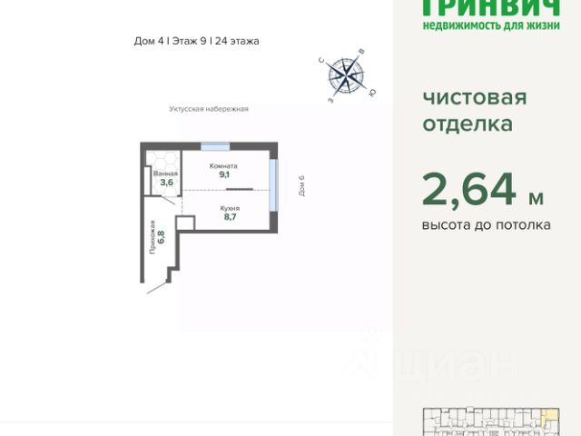 В чистой продаже продается квартира - студия, обременений нет, один собственник. Комфортный 4 этаж. 19.2 общей площадью( включая санузел), жилая площадь 11 кв.м кухня входит в эти метры , совмещена с гостиной. с учетом лоджии вся квартира 20,2 кв.м ( 1 м2 ширина лоджии, длина во всю квартиру!) Дом сдан 4 квартал 2023 г Дом расположен в сторону Рамады, по адресу микрорайон Светлый, дом 11 (Уктус). Квартира под чистовую ( под ремонт) Стены выровнены, на полу - стяжка с шумоизоляцией, электроразводка, сейф-дверь, окна - ПВХ профиль с 2х камерным энергосберегающим стеклопакетом, лоджия.В санузле - гидроизоляция, унитаз и раковина. Есть возможность реализовать все свои идеи в интерьере! На районе 4 спортивных площадки волейбольная, баскетбольная, футбольная и хоккейная. Зимой заливается каток. В жилом комплексе есть наземная бесплатная парковка только для жителей, организован двор с детскими и спортплощадками. В доме - современные подъезды, видеонаблюдение, 4 грузопассажирских лифта. -В микрорайоне Светлый уже работают продуктовые супермаркеты Верный, Магнит, центр йоги, салон красоты, копи-центр, пункты выдачи интернет-заказов, магазин строительных материалов, пекарня, кофейня, стоматология. В шаговой доступности: два парка имени Лесоводов России, два водоёма (карьер Рамоды и Нижнеисетский пруд), карьер на Рамоде пригоден для купания + вейк парк. Удобная развязка Аэропорт Кольцово - 5 минут. Садик. Школа N131. Магазины Верный, Магнит, Жизнь март, кафе, Аптеки, Ветеринарная клиника и многое другое. Есть площадка для выгула собак. Своя котельная. Регулярно ходит общественный транспорт 042, 083 (остановка прямо в жилом комплексе, конечная) Дорога до центра Екатеринбурга занимает 20 минут. Собственник.