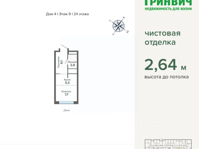 Продается уютная студия площадью 23 кв. м, расположенная на 9 этаже современного 27-этажного дома, построенного в 2024 году. Квартира находится всего в 4 минутах езды на автомобиле от метро. Это отличное предложение для тех, кто ценит комфорт и удобство городской жизни. Студия требует ремонта, поэтому у вас есть возможность воплотить все ваши дизайнерские идеи и создать пространство, которое будет полностью соответствовать вашим представлениям об идеальном жилье. Высота потолков составляет 2.7 метра, что добавляет ощущение простора. Окна выходят на улицу, обеспечивая хорошее естественное освещение. В квартире есть совмещенный санузел. Дом оборудован двумя пассажирскими и одним грузовым лифтом, а также подземной парковкой, поэтому вы всегда найдете место для своего автомобиля. Здание новое, поэтому все коммунальные системы работают безупречно. Рядом с домом находятся школы и детские сады, что удобно для семей с детьми. Также в шаговой доступности расположены клиники и магазины, что делает повседневные дела проще и удобнее. Продажа квартиры осуществляется без обременений, поэтому сделка пройдет быстро и без лишних хлопот. Возможна ипотека. Это отличный вариант для первого жилья или инвестиции в недвижимость. Не упустите возможность стать владельцем этой студии! Записывайтесь на просмотр, чтобы лично оценить все её преимущества. Ждем вас!
