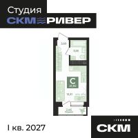 1-комн. студия от застройщика с предчистовой отделкой в ЖК "Квартал Траектория" на 9 этаже. Общая площадь: 33.2 кв.м., площадь гостиной 22.6 кв.м., из которых 5 кв.м. выделено под кухонную зону. Все окна выходят на одну сторону. В квартире один балкон, один совмещенный санузел. Высота потолков 2.82 м.