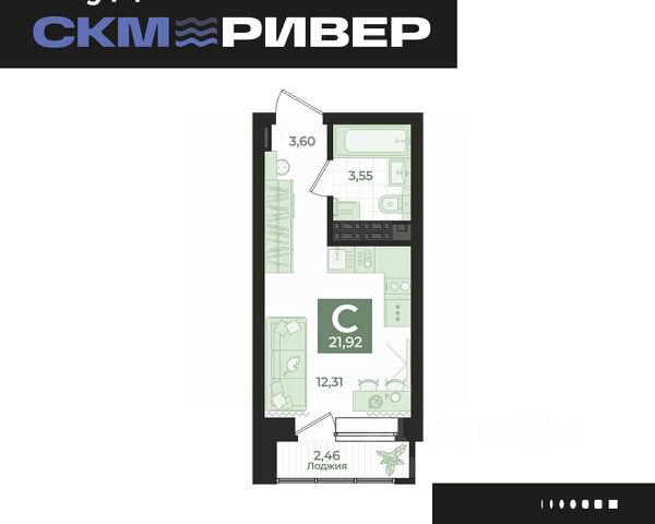 Студия в квартале "Траектория". Особенности планировки: балкон, предчистовая отделка.