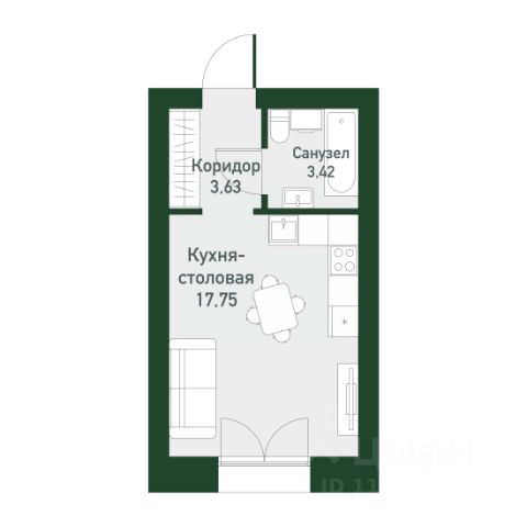 Отличительная особенность студии-2 окна, что позволит зонировать помещение на два пространства. Правильная геометрия квартиры, никаких косых стен.