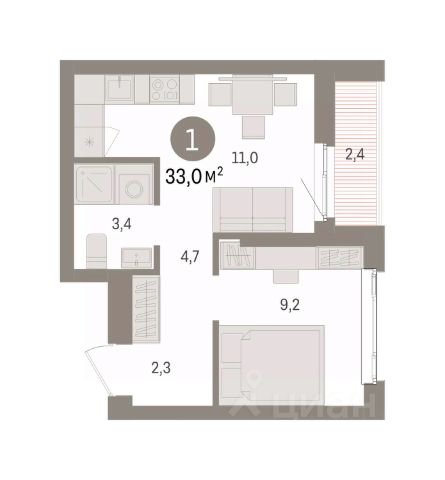 Просторная 1-комн. студия с предчистовой отделкой в ЖК "Квартал Траектория" на 14 этаже. Общая площадь: 30.4 кв.м., площадь гостиной 22.1 кв.м., из которых 5 кв.м. выделено под кухонную зону. Все окна выходят на одну сторону. В квартире один балкон, один совмещенный санузел. Высота потолков 2.82 м. Дом монолитный, многоподъездный, переменной этажности, от 7 до 25 этажей. Квартира находится в 3-й секции высотой 16 этажей в корпусе 1-1. На этаже 7 квартир. В подъезде 1 пассажирский и 1 грузовой лифт. Начало строительства - 4 квартал 2025 года. Окончание строительства - 4 квартал 2027 года. Оформление сделки по договору долевого участия. Студия в квартале "Траектория". Особенности планировки: балкон, вид во двор, предчистовая отделка. квартиры в нашей базе: МНВ01-Ж3.14.5. Квартал "Траектория" строится в границах улиц Билимбаевской, Расточной, Монтажников и Маневровой Раньше здесь находился оборонный завод 5-ЦАРЗ, основанный в 1945 году. После войны он ремонтировал военную и грузовую технику — от "Виллисов" и "Студебекеров" до советских ЗИС-5 и ГАЗ-67. Сортировка — район с развитой инфраструктурой, обжитыми жилыми кварталами разных эпох и большим количеством парков. До центра Екатеринбурга — 20 минут на машине. Туда же можно отправиться на автобусе: ближайшая остановка общественного транспорта — в 4 минутах от "Траектории". Рядом с "Траекторией" расположены магазины, торговый центр, детские сады, школы, поликлиники и полезные сервисы, а также другой проект Брусники — квартал "Депо". Если хочется развлечений, можно отправиться в ТРЦ "Карнавал" и парк с аттракционами "Таганская слобода" — дорога туда займёт не более 10 минут на машине. Квартал "Траектория" — первый этап комплексного развития территории, которую раньше занимали производственные здания. На месте бывших цехов Брусника создаст дружелюбную среду и комфортное пешеходное пространство для всего района. Для озеленения квартала мы подобрали больше 60 видов растений: ольху, липу, клён, иву, грушу, вишню, сирень, барбарис, гортензию, смородину, ирис, декоративные травы. Они цветут в разное время года и постоянно меняют настроение двора. В "Траектории" мы предусмотрели несколько общественных пространств, открытых для всех горожан: встречающий сквер, лесопарк у храма и событийный сквер между домами. Когда захочется тишины и уединения, можно устроить прогулку во внутренних дворах: в них нет машин и посторонних, зато много зелени, света и мест для отдыха. Каждый двор в квартале "Траектория" — продолжение квартиры, только под открытым небом. Здесь можно прогуляться босиком по траве, устроить утреннюю йогу, почитать книгу в гамаке или отправить детей поиграть, не переживая за их безопасность. Мы закроем дворы от машин, чтобы создать безопасную среду для отдыха. Применим натуральные материалы в отделке малых архитектурных форм — дерево, камень, металл без лишней обработки. Внутри каждого двора — детские площадки, перголы с тенистыми зонами, мягкие газоны и места для общения с со