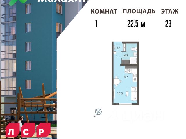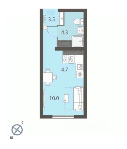 квартира студия светлая, находится на 5 этаже кирпичного дома, потолки 2.7м .