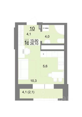 Новая кваpтиpa с уникальным расположением на этаже, современной планировкой формата студии и остекленной лоджией.