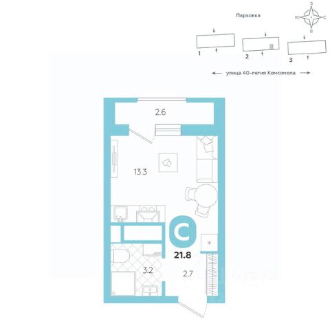 Эргономичная квартира-студия с лоджией и перспективой роста в цене — отличный выбор для тех, кто делает первые шаги к самостоятельной жизни. Общая площадь квартиры 21,7 кв.м., и ее умная планировка позволяет создать атмосферу, полностью отражающую ваши стиль и предпочтения. Квартира располагается в ЖК "Комсомольский" — жилом комплексе комфорт-класса. Здесь вы будете наслаждаться беззаботной жизнью, ведь ваш дом — воплощение практичности, безопасности и надежности. Для удобства предусмотрены колясочные на первых этажах домов, где можно оставить велосипеды и коляски в тепле. За безопасность отвечают система электронных ключей и видеонаблюдение. Еще здесь собственная котельная, поэтому в доме всегда будут горячая вода и оплата счетов только за фактически потребленное тепло. ПРЕИМУЩЕСТВА ЖК Красивые и функциональные парадные с мягкой и стильной зоной для отдыха, книгообменником, встроенными почтовыми ящиками и нишами для сумок Колясочные с доступом по ключу IP-домофоны Тихие лифты с плавным ходом О ПРОЕКТЕ ЖК "Комсомольский" строится в спокойном Кировском районе Екатеринбурга в границах улиц Сыромолотова — Рассветная — 40-лет Комсомола. Комплекс состоит из трех домов переменной этажности, которые выделяются динамичными линиями, выразительными фасадами и стильными лоджиями. ЛОКАЦИЯ Всё, что необходимо для повседневной жизни, находится недалеко от дома: школы, детские сады, продуктовые магазины, фитнес-клубы. Дорога до центра города на машине займет всего 10 минут — достаточно повернуть с улицы 40-летия Комсомола на улицу Владимира Высоцкого. Рядом с этим перекрестком начинается "Тропа здоровья" — большой терренкур вдоль "Каменных палаток". 10 мин до центра 3-4 минуты до школы No 82, гимназии No 176 4-5 минут до детских садов No 208, No 583, 266 20 мин до Свердловского областного медицинского колледжа и Центральной городской больницы No 7 В рамках стратегического развития района на первых этажах домов появятся коммерческие помещения, в которых откроются магазины и кафе. Следует учесть, что к 2030 году в Кировском районе планируется формирование регионального рекреационно-оздоровительного кластера, строительство ветки метро, расширение и модернизация старых промышленных зон социальной и бизнес-инфраструктуры, что приведет к созданию комфортной среды для жизни. Кроме того, в стратегию входит развитие Шарташского лесного парка как центра регионального и международного туризма. СПОСОБЫ ПОКУПКИ Ипотека: подберем выгодные условия в нескольких банках, чтобы вы могли выбрать лучшее Материнской капитал: можно использовать в качестве первоначального взноса Рассрочка: платите частями без % Сертификаты: позволяют оплатить часть стоимости квартиры О КОМПАНИИ "Паритет Девелопмент" — это современный и ответственный подход к реализации проектов в сфере жилищного строительства. Компания ф