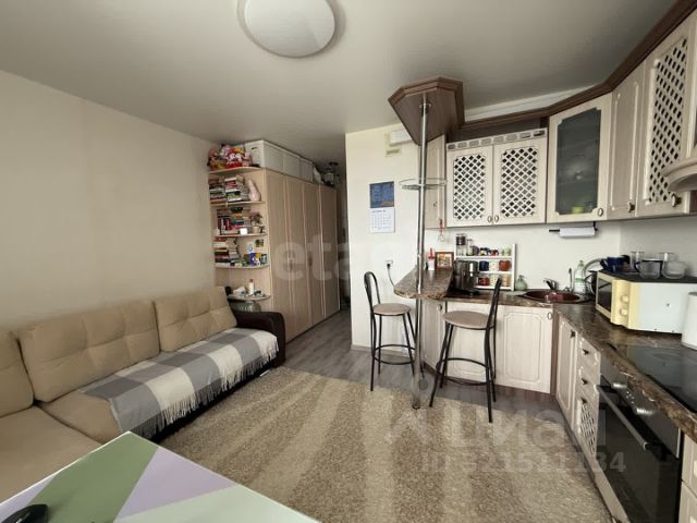 Просторная квартира студия, общей площадью 33.2 м2., распложена на высоком 19 этаже, где открывается шикарный вид на город! Окна квартиры выходят на разные стороны УГМК Арену и Свято-Троицкий Кафедральный Собор, панорамное остекление.