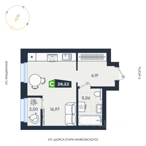 К продаже предлагается уютная видовая студия. Расположена в Чкаловском районе в границах ул. Павлодарская-Щербакова и поймы реки Исеть (жк Река. Дом на набережной). На 14 этаже 30 этажного дома с современной архитектурой, общая площадь 31,79 м2 - просторная прихожая с гардеробной, совмещенный с/узел и большая комната с возможностью зонирования пространства.