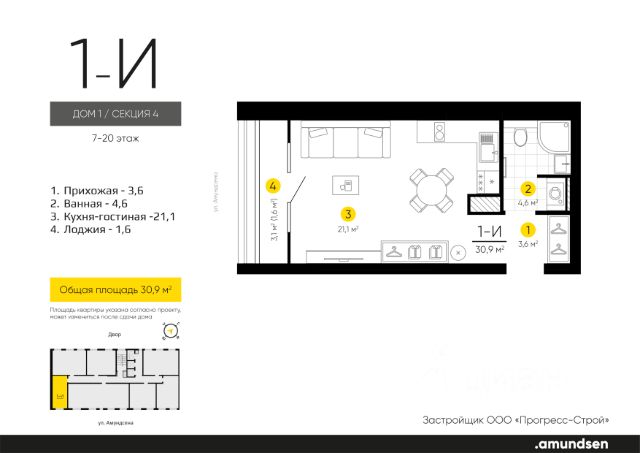 Жилой квартал "Amundsen" - для себя, для семьи, для жизни и развития. Авторская концепция проекта эффектно выделяется в 3 особенностях комплекса: фасады, двор и места общего пользования. AMUNDSEN ПРОЕКТ С ХАРАКТЕРОМ ВЕЛИКОГО ПЕРВООТКРЫВАТЕЛЯ. 4 СЕЗОНА: Двор-трансформер позволяет активно использовать все площадки круглый год. В холодное время года санки, коньки и снежные бои за главную башню. В теплое время источник наполняет двор водой и прохладой. Работают площадки для активных игр и спокойного отдыха. 6 ДЕТСКИХ ПЛОЩАДОК: Мы разделили площадки по возрастным группам для малышей и детей постарше. Качели, аттракционы, водные и активные игры созданы, чтобы познавать мир. 5 ПЛОЩАДОК ДЛЯ СПОКОЙНОГО ОТДЫХА: За счет игры с ландшафтом мы создали приватные зоны, украсили пространство разнотравьем, оживили двор источником. Шум воды, лежаки, беседки, парк места, где ты почувствуешь течение жизни. AMUNDSEN ИДЕАЛЬНОЕ МЕСТО ДЛЯ ЖИЗНИ И РАЗВИТИЯ. - Жилой квартал расположен в экологически чистом районе в окружении двух лесных массивов. - Новые современные школы и детские сады. Спортивный кластер для занятий. - Главный холл пространство для всех. Для самых маленьких игры, для взрослых кафе с ярким дизайном, тихий коворкинг, места для отдыха и светлый, просторный атриум. - Детские площадки "будущего" с оригинальным подходом к созданию игровой среды. - Безопасная территория. Круглосуточная охрана, видеонаблюдение 24/7, электронная система доступа, двор без машин. Застройщик ООО СЗ "Прогресс-Строй", проектная декларация на сайте наш.дом.рф Квартиры-студии в ЖК с большой кухней-гостиной в Екатеринбурге.
