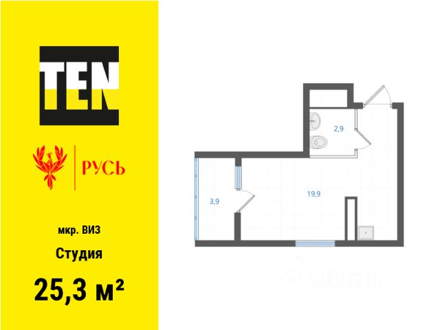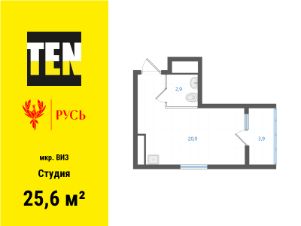 Новая кваpтиpa с уникальным расположением на этаже, современной планировкой формата студии и остекленной лоджией.