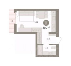 Однокомнатная студия с предчистовой отделкой в ЖК "Квартал Траектория" на 9 этаже. Общая площадь: 33.2 кв.м., площадь гостиной 22.6 кв.м., из которых 5 кв.м. выделено под кухонную зону. Все окна выходят на одну сторону. В квартире один балкон, один совмещенный санузел. Высота потолков 2.82 м.