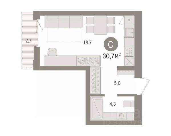 Студия в квартале "Траектория". Особенности планировки: балкон, вид во двор, предчистовая отделка.