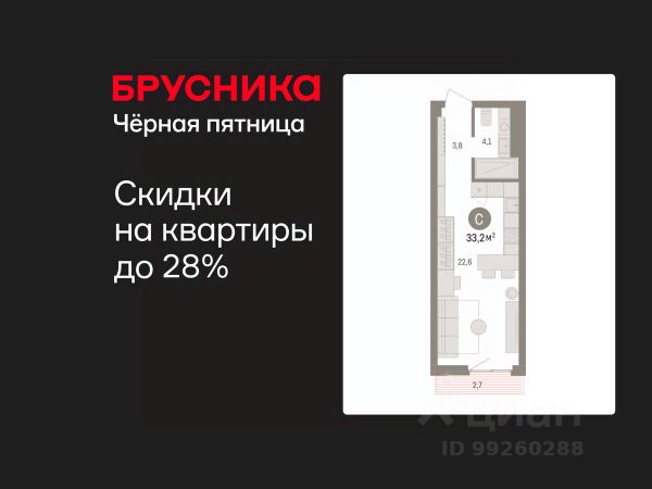 Продается однокомнатная студия с предчистовой отделкой в ЖК "Квартал Траектория" на 11 этаже. Общая площадь: 33.2 кв.м., площадь гостиной 22.6 кв.м., из которых 5 кв.м. выделено под кухонную зону. Все окна выходят на одну сторону. В квартире один балкон, один совмещенный санузел. Высота потолков 2.82 м. Дом монолитный, многоподъездный, переменной этажности, от 7 до 25 этажей. Квартира находится в 1-й секции высотой 25 этажей в корпусе 1-1. На этаже 12 квартир. В подъезде 2 пассажирских и 1 грузовой лифт. Начало строительства - 4 квартал 2025 года. Окончание строительства - 4 квартал 2027 года. Оформление сделки по договору долевого участия. Студия в квартале "Траектория". Особенности планировки: предчистовая отделка, балкон. квартиры в нашей базе: МНВ01-Ж1.11.10. Квартал "Траектория" строится в границах улиц Билимбаевской, Расточной, Монтажников и Маневровой Раньше здесь находился оборонный завод 5-ЦАРЗ, основанный в 1945 году. После войны он ремонтировал военную и грузовую технику — от "Виллисов" и "Студебекеров" до советских ЗИС-5 и ГАЗ-67. Сортировка — район с развитой инфраструктурой, обжитыми жилыми кварталами разных эпох и большим количеством парков. До центра Екатеринбурга — 20 минут на машине. Туда же можно отправиться на автобусе: ближайшая остановка общественного транспорта — в 4 минутах от "Траектории". Рядом с "Траекторией" расположены магазины, торговый центр, детские сады, школы, поликлиники и полезные сервисы, а также другой проект Брусники — квартал "Депо". Если хочется развлечений, можно отправиться в ТРЦ "Карнавал" и парк с аттракционами "Таганская слобода" — дорога туда займёт не более 10 минут на машине. Квартал "Траектория" — первый этап комплексного развития территории, которую раньше занимали производственные здания. На месте бывших цехов Брусника создаст дружелюбную среду и комфортное пешеходное пространство для всего района. Для озеленения квартала мы подобрали больше 60 видов растений: ольху, липу, клён, иву, грушу, вишню, сирень, барбарис, гортензию, смородину, ирис, декоративные травы. Они цветут в разное время года и постоянно меняют настроение двора. В "Траектории" мы предусмотрели несколько общественных пространств, открытых для всех горожан: встречающий сквер, лесопарк у храма и событийный сквер между домами. Когда захочется тишины и уединения, можно устроить прогулку во внутренних дворах: в них нет машин и посторонних, зато много зелени, света и мест для отдыха. Каждый двор в квартале "Траектория" — продолжение квартиры, только под открытым небом. Здесь можно прогуляться босиком по траве, устроить утреннюю йогу, почитать книгу в гамаке или отправить детей поиграть, не переживая за их безопасность. Мы закроем дворы от машин, чтобы создать безопасную среду для отдыха. Применим натуральные материалы в отделке малых архитектурных форм — дерево, камень, металл без лишней обработки. Внутри каждого двора — детские площадки, перголы с тенистыми зонами, мягкие газоны и места для общения с соседями
