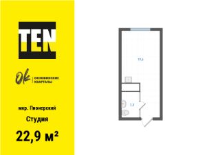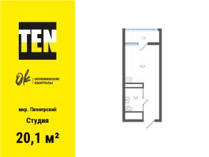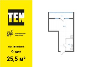 Продается 1-комн. студия от застройщика с предчистовой отделкой в ЖК "Квартал Траектория" на 11 этаже. Общая площадь: 35.1 кв.м., площадь гостиной 25.4 кв.м., из которых 5 кв.м. выделено под кухонную зону. Все окна выходят на одну сторону. В квартире один балкон, один совмещенный санузел. Высота потолков 2.82 м.