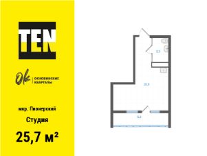 Выгодное предложение от застройщика: - Скидка до 10% на старте продаж - Рассрочка от 50 000 ₽ / месяц - Семейная ипотека от 6% - Льготная ИТ-ипотека от 6% Открыты продажи квартиры-студии в Жилом квартале Вэйвер от Девелоперской компании Люди, общей площадью 26.27 кв.м., на 14 этаже, по адресу: г. Екатеринбург, улица Восточная. Срок сдачи: IV квартал 2027 года. Жилой квартал Вэйвер это проект класса комфорт-плюс, расположенный в развитой локации на улице Восточная в Октябрьском районе в Екатеринбурге. В этом жилом квартале вы сможете жить в соответствии со своей индивидуальностью: прогрессивно, смело, свободно. Здесь современный комфорт встречается с живой городской историей — и это создаёт совершенно особую атмосферу места. Пересечение улиц Восточная и Тверитина это уже сформированная, удобная локация в пределах центра города с удобным въездом и выездом. Главное преимущество расположения квартала находится всего в 8 минутах прогулки 60 гектаров живого леса парка Маяковского для променадов, пробежек и семейных выходных на свежем воздухе. Объекты социальной инфраструктуры находятся в пешей доступности от проекта: за 5-8 минут неспешным шагом можно добраться до детского сада, школы, 2 гимназий и поликлиники На территории девелопер спроектировал закрытый двор с площадками для отдыха и террасой для резидентов дома на 2 этаже. Для занятий спортом будут организованы зоны для воркаута и настольного тенниса. Для детей несколько игровых пространств. Внутренний интерьер лобби продуман до мелочей: консьерж-сервис, переговорная, колясочная с поручнями для крепления самокатов и душевым поддоном для мойки. Гости могут разместиться в комфортной зоне ожидания с кофе и биокамином. В доме представлено 272 квартиры, от 2 до 9 на этаже, с предчистовой отделкой. Девелопер предлагает более 30 вариантов планировок с гардеробными, просторными санузлами и окнами на 2 стороны. - студии от 26 до 31 кв.м. - однокомнатные квартиры от 35 до 46 кв.м. - двухкомнатные квартиры от 52 до 69 кв.м. - трехкомнатные квартиры от 72 до 93 кв.м. В проекте представлены также уникальные квартиры площадью более 100 кв.м., с видовыми террасами, местом под камин, панорамными остеклением и потолками до 3,6 метров. Квартира-студия с отделкой от застройщика в Свердловской области.