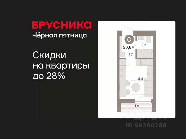Студия в Южных кварталах. Особенности планировки: предчистовая отделка, балкон. квартиры в нашей базе: ЮКВ11-Ж2.6.6. Жилой район "Южные кварталы" расположен в границах улиц Московская, Шаумяна и Фурманова, недалеко от автовокзала. До центра города — 10 минут на автомобиле. До станции метро "Чкаловская" — 15 минут пешком. Рядом находится парк, школа олимпийского резерва, несколько гимназий, лицей, детские сады и городская больница. "Южные кварталы" — проект комплексного редевелопмента территории, разработанный архитекторами Брусники совместно с голландскими бюро. Он разделен на несколько частей, каждая из которых имеет свой характер. Вдоль оживленной Московской появятся более высокие и крупные дома. Профиль спокойной и очень зелёной Шаумяна сформируют кварталы среднеи этажности. В глубине района мы расположим урбан-виллы, чуть дальше — башни-доминанты. Последние будут играть роль визуальных акцентов и впоследствии станут символами этого места. Ближе к Фурманова мы организуем образовательный кластер. Его составят два детских сада на 300 и 325 мест и школа, рассчитанная на 1500 учеников. Школа будет иметь спортивную зону, которая станет доступна и жителям района. Свяжет территорию сеть общественных пространств. Её центральным звеном станет зелёный променад, проходящий сквозь весь район и соединяющий его с парком 50-летия ВЛКСМ. #ZM9ZZZ