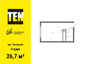 Однокомнатная студия от застройщика с предчистовой отделкой в ЖК "Квартал Траектория" на 9 этаже. Общая площадь: 35.1 кв.м., площадь гостиной 25.4 кв.м., из которых 5 кв.м. выделено под кухонную зону. Все окна выходят на одну сторону. В квартире один балкон, один совмещенный санузел. Высота потолков 2.82 м.
