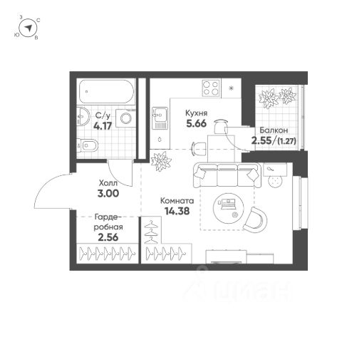 В жилом комплексе спроектированы квартиры на 1, 2 и 3 комнаты, в том числе студийного типа, с высотой потолков 2,72 м. Площадь помещений варьируется от 28,67 до 80,25 м². Лоджии и балконы в квартирах остеклены. "Ривьера Инвест Екатеринбург" сдает жилье с чистовой отделкой.