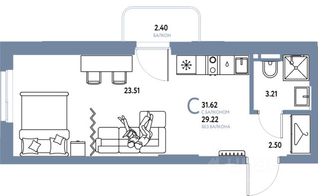 Жилая площадь 9.3 м2, кухня 4.5 м2, чистовая отделка. Раздельных санузлов - нет, балконов - нет, лоджий - нет.
