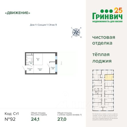 Спешите оформить бронирование на этих условиях! Срок предложения ограничен! Стоимость квартиры указана со скидкой, ваша экономия составит 469,000 RUB. По всем вопросам обращайтесь в офис продаж, мы вам все подробно расскажем! 1-комн. квартира-студия с предчистовой отделкой в ЖК "Астон.Движение" на 12 этаже. Общая площадь: 25.55 кв.м., площадь гостиной 17.9 кв.м., из которых 5.2 кв.м. выделено под кухонную зону. Все окна выходят на одну сторону. В квартире одна лоджия, один совмещенный санузел. Высота потолков 2.7 м. Отделка white box - золотая середина между чистовой и черновой отделкой. В вашей квартире будут выполнены работы: стяжка пола; выровнены и оштукатурены стены; затерты швы на потолке; электроразводка во всех помещениях; полностью готовая система отопления, водопровод и канализация; установлена входная металлическая сейф-дверь. Дом монолитный, трехподъездный, переменной этажности, от 8 до 12 этажей. Квартира находится в 1-й секции высотой 12 этажей в корпусе 1. На этаже 10 квартир. В подъезде 2 грузовых лифта. Окончание строительства - 4 квартал 2025 года. Оформление сделки по договору долевого участия. Квартал Астон.Движение расположен в развивающейся части Новой Сортировки, на пересечении улицы Пехотинцев и переулка Проходной. Первая очередь 6 домов разной этажности, детский сад и бульвар с прогулочными аллеями в окружении зелени. В архитектуре отдано предпочтение отдельно стоящим секциям, благодаря чему получилась большая вариативность планировок, много видовых квартир с окнами на разные стороны, а постепенный набор высоты домов позволит наполнить солнечным светом каждую квартиру. Первые этажи домов соединяет большая галерея товаров и услуг для жителей и гостей квартала. Двор обустроен для приятного и неспешного движения. Полностью закрытый, без доступа автомобилей, с плавными линиями прогулочных тропинок. Игровые площадки для малышей и ребят постарше находятся на отдалении друг от друга. А взрослым можно разместиться в уютных беседках, на скамейках со столиками в тени деревьев или заняться спортом в уличном воркауте. В холлы организован безопасный безбарьерный доступ: нет риска получить травму или оступиться. Просторные лобби с современной дизайнерской отделкой, ресепшен, кофе-пойнтами и мягкими зонами наполнены светом и воздухом. Чистовая отделка включает: • В комнатах, коридоре и кухне — ламинат 32 класса на звукоизоляционной подложке. В ванной — напольная керамическая плитка; • Стены покрыты обоями и окрашены. В ванной влагостойкая краска нейтрального цвета; • Потолки зашпаклёваны и окрашены; • Установлены глухие межкомнатные двери одной модели; • Сантехника — раковина, унитаз и ванна. #zwD3Zo
