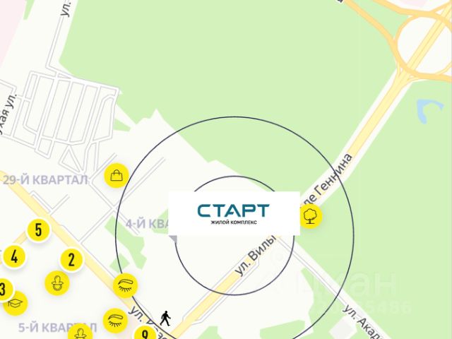 Рядом с домом находятся школы, детские сады и магазины, что обеспечивает удобство для семей с детьми и позволяет легко совершать ежедневные покупки. Ближайшая станция метро "Чкаловская" находится в 22 минутах езды на автомобиле, что делает передвижение по городу удобным и быстрым.