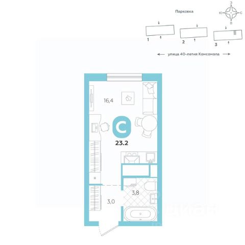 Эргономичная квартира-студия с перспективой роста в цене — отличный выбор для тех, кто делает первые шаги к самостоятельной жизни. Общая площадь квартиры 23,2 кв.м., и ее умная планировка позволяет создать атмосферу, полностью отражающую ваши стиль и предпочтения. Квартира располагается в ЖК "Комсомольский" — жилом комплексе комфорт-класса. Здесь вы будете наслаждаться беззаботной жизнью, ведь ваш дом — воплощение практичности, безопасности и надежности. Для удобства предусмотрены колясочные на первых этажах домов, где можно оставить велосипеды и коляски в тепле. За безопасность отвечают система электронных ключей и видеонаблюдение. Еще здесь собственная котельная, поэтому в доме всегда будут горячая вода и оплата счетов только за фактически потребленное тепло. ПРЕИМУЩЕСТВА ЖК На этаже 14 квартир Красивые и функциональные парадные с мягкой и стильной зоной для отдыха, книгообменником, встроенными почтовыми ящиками и нишами для сумок Колясочные с доступом по ключу IP-домофоны Тихие лифты с плавным ходом О ПРОЕКТЕ ЖК "Комсомольский" строится в спокойном Кировском районе Екатеринбурга в границах улиц Сыромолотова — Рассветная — 40-лет Комсомола. Комплекс состоит из трех домов переменной этажности, которые выделяются динамичными линиями, выразительными фасадами и стильными лоджиями. ЛОКАЦИЯ Всё, что необходимо для повседневной жизни, находится недалеко от дома: школы, детские сады, продуктовые магазины, фитнес-клубы. Дорога до центра города на машине займет всего 10 минут — достаточно повернуть с улицы 40-летия Комсомола на улицу Владимира Высоцкого. Рядом с этим перекрестком начинается "Тропа здоровья" — большой терренкур вдоль "Каменных палаток". 10 мин до центра 3-4 минуты до школы No 82, гимназии No 176 4-5 минут до детских садов No 208, No 583, 266 20 мин до Свердловского областного медицинского колледжа и Центральной городской больницы No 7 В рамках стратегического развития района на первых этажах домов появятся коммерческие помещения, в которых откроются магазины и кафе. Следует учесть, что к 2030 году в Кировском районе планируется формирование регионального рекреационно-оздоровительного кластера, строительство ветки метро, расширение и модернизация старых промышленных зон социальной и бизнес-инфраструктуры, что приведет к созданию комфортной среды для жизни. Кроме того, в стратегию входит развитие Шарташского лесного парка как центра регионального и международного туризма. СПОСОБЫ ПОКУПКИ Ипотека: подберем выгодные условия в нескольких банках, чтобы вы могли выбрать лучшее Материнской капитал: можно использовать в качестве первоначального взноса Рассрочка: платите частями без % Сертификаты: позволяют оплатить часть стоимости квартиры О КОМПАНИИ "Паритет Девелопмент" — это современный и ответственный подход к реализации проектов в сфере жилищного стро