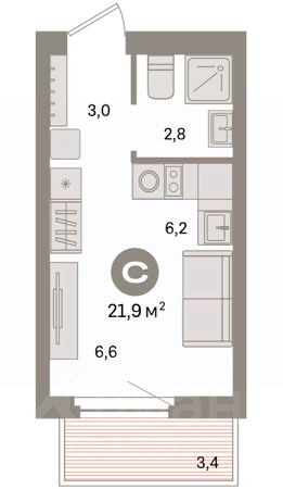 Продается 1-комн. студия с предчистовой отделкой в ЖК "Квартал Траектория" на 11 этаже. Общая площадь: 30.4 кв.м., площадь гостиной 22.1 кв.м., из которых 5 кв.м. выделено под кухонную зону. Все окна выходят на одну сторону. В квартире один балкон, один совмещенный санузел. Высота потолков 2.82 м.