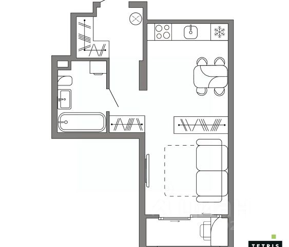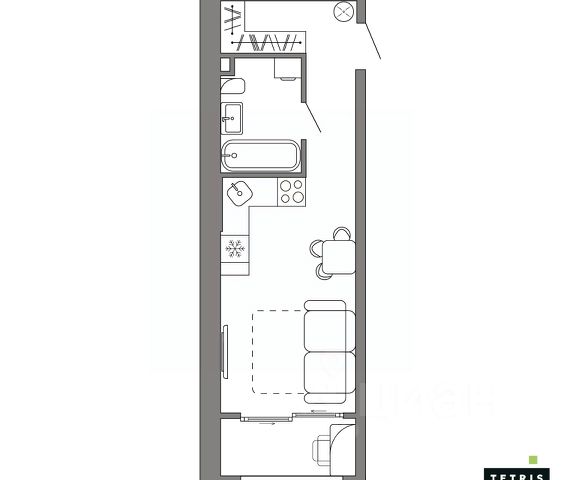 Студия в квартале "Траектория". Особенности планировки: балкон, предчистовая отделка.