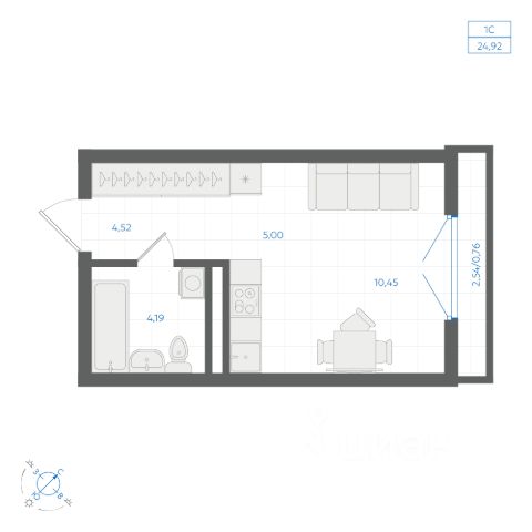 В продаже шикарная квартира-студия в доме комфорт-класса. Расположена в центральном районе города на пересечении улиц Амундсена - Шаумяна - Советских женщин - Депутатская (жк Дом Милый дом, 1 очередь, 2 секция). На 28 этаже 31-этажного дома с современной архитектурой, площадь всех помещений 28,45 м2 - уютная прихожая с гардеробной, просторный санузел и большая комната с зонами кухни и места для отдыха