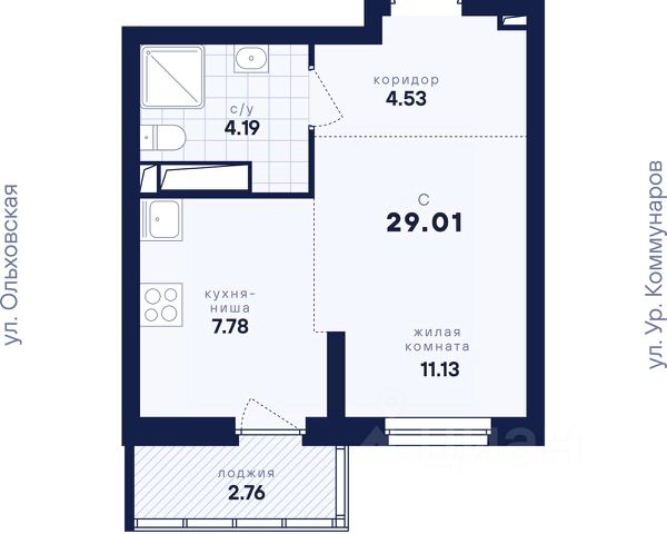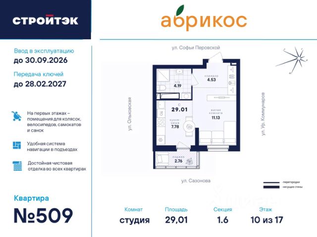 Студия в квартале "Траектория". Особенности планировки: балкон, предчистовая отделка.