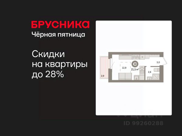 Студия в квартале "Траектория". Особенности планировки: стартовая цена, предчистовая отделка, балкон.
