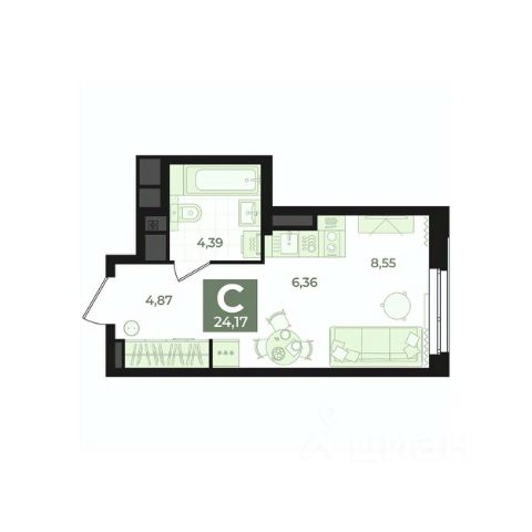 Квартира-студия на 4 этаже с балконом. Окна выходят во двор. Чистовая отделка под ключ. Дом в 15 минутах от центра города. Рядом остановки общественного транспорта, школы и детские сады.