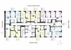 Квартира 9 в подъезде 1. Новое поколение комфорта и технологий для жизни. Закрытый двор без машин. Двухуровневый подземный паркинг с лифтовым спуском и кладовыми. Эргономичные планировки, большие окна, системы фильтрации воды и проветривания. Дизайнерские вестибюли в стилистике советского авангарда и всесезонная игровая комната. Архитектура сочетает лаконичность конструктивизма и современные материалы. В центре квартала запроектирован муниципальный детский сад на 300 мест.