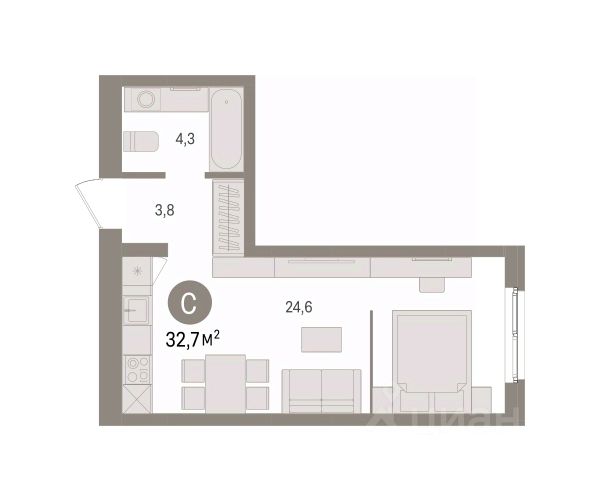 1-комн. квартира-студия с предчистовой отделкой в ЖК "Соната Парк" на 2 этаже. Общая площадь: 42.99 кв.м. Высота потолков 2.72 м. Дом монолитный, двухподъездный, переменной этажности, от 23 до 30 этажей. Квартира находится в 1-й секции высотой 30 этажей в корпусе 1. На этаже 10 квартир. В подъезде 2 пассажирских и 2 грузовых лифта. Окончание строительства - 4 квартал 2028 года. Оформление сделки по договору долевого участия. ЖК "Соната Парк" расположен в новом городском кластере "Аллея Романтиков" на Юго-Западе Екатеринбурга. Это район улиц Волгоградская Советских женщин Шаумяна Амудсена. Аллея объединяет разные кварталы застройщиков этой территории в единое целое. Чистые линии, интеллектуальная элегантность фасадов, игра света и тени это партитура, написанная архитектором. Благоустройство жилого комплекса это синтез искусства и природы. Поющие музыкальные инсталляции и поэтический променад. Оркестр растений: сирень, гортензии и яблони, чья цветущая палитра сменяется в течение года. Жизнь с готовой инфраструктурой Развитая транспортная доступность и социальная среда: уже сегодня рядом с домом детские сады, школы, парковые зоны, супермаркеты и рестораны в шаговой доступности. Технологии безопасности Для спокойствия жителей создана интеллектуальная система безопасности. Круглосуточный визуальный контроль обеспечивают профессиональная служба охраны, постоянно присутствующая на территории, и ситуационный центр. Система видеонаблюдения охватывает каждый уголок комплекса, исключая "слепые" зоны. Чёткое зонирование и навигация дополняют картину полного порядка. Дизайнерские подъезды Стилистика подъездов продолжает концепцию "Соната Парка", вдохновлённого музыкальной симфонией: сдержанный, но при этом впечатляющий дизайн соседствует с удобством и функциональностью. В подъезде вас встречает музыка, создавая особую атмосферу с первых секунд. Светлые и стильные входные группы с панорамным остеклением наполняют пространство светом, добавляя ему современной эстетики и ощущения безопасности. Аллея Романтиков Проект органично вписан в масштабный пешеходный кластер "Аллея Романтиков" — уникальное общегородское пространство, которое уже сегодня называют будущей альтернативой главным прогулочным улицам города. Это многофункциональный бульвар протяжённостью 1 километр, где всё создано для вдохновения и отдыха. Это "зелёное сердце" территории, которое объединит кварталы разных застройщиков в единую гармоничную среду. Здесь будут назначать свидания, гулять с семьёй, встречаться с друзьями и просто наслаждаться моментом. Линейка ремонтов Ремонт с капсульной меблировкой — когда всё готово к жизни. Мы соединили качественный ремонт и продуманную меблировку в одном флаконе. Словно "с иголочки", новая квартира готова и обставлена с чувством стиля и вкуса. Здесь будет всё до последней мелочи: от дивана до чайника, от освещения до текстиля. Переступите порог и моментально ощутите себя дома. Особенности: Видеонаблюдение Подзе