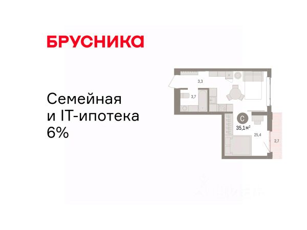 Студия в квартале "Траектория". Особенности планировки: балкон, предчистовая отделка.