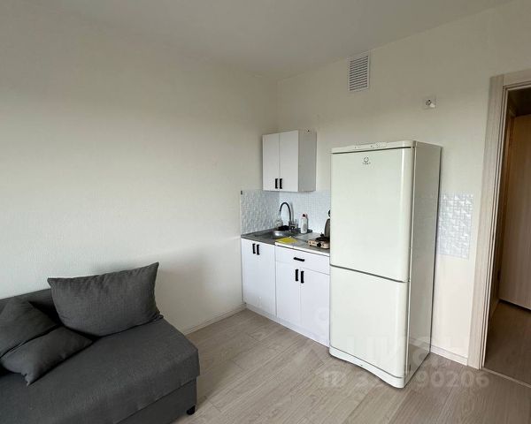 Однокомнатная квартира-студия от застройщика с отделкой в ЖК "ДНК. Дом на Куйбышева" на 18 этаже. Общая площадь: 23.69 кв.м., площадь гостиной 13.73 кв.м., из которых 4.03 кв.м. выделено под кухонную зону. Все окна выходят на одну сторону. В квартире один совмещенный санузел. Высота потолков 2.7 м.