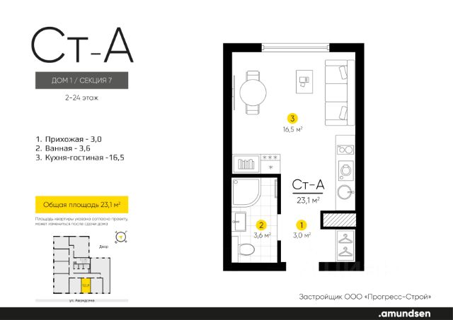 Жилой квартал "Amundsen" - для себя, для семьи, для жизни и развития. Авторская концепция проекта эффектно выделяется в 3 особенностях комплекса: фасады, двор и места общего пользования. AMUNDSEN ПРОЕКТ С ХАРАКТЕРОМ ВЕЛИКОГО ПЕРВООТКРЫВАТЕЛЯ. 4 СЕЗОНА: Двор-трансформер позволяет активно использовать все площадки круглый год. В холодное время года санки, коньки и снежные бои за главную башню. В теплое время источник наполняет двор водой и прохладой. Работают площадки для активных игр и спокойного отдыха. 6 ДЕТСКИХ ПЛОЩАДОК: Мы разделили площадки по возрастным группам для малышей и детей постарше. Качели, аттракционы, водные и активные игры созданы, чтобы познавать мир. 5 ПЛОЩАДОК ДЛЯ СПОКОЙНОГО ОТДЫХА: За счет игры с ландшафтом мы создали приватные зоны, украсили пространство разнотравьем, оживили двор источником. Шум воды, лежаки, беседки, парк места, где ты почувствуешь течение жизни. AMUNDSEN ИДЕАЛЬНОЕ МЕСТО ДЛЯ ЖИЗНИ И РАЗВИТИЯ. - Жилой квартал расположен в экологически чистом районе в окружении двух лесных массивов. - Новые современные школы и детские сады. Спортивный кластер для занятий. - Главный холл пространство для всех. Для самых маленьких игры, для взрослых кафе с ярким дизайном, тихий коворкинг, места для отдыха и светлый, просторный атриум. - Детские площадки "будущего" с оригинальным подходом к созданию игровой среды. - Безопасная территория. Круглосуточная охрана, видеонаблюдение 24/7, электронная система доступа, двор без машин. Застройщик ООО СЗ "Прогресс-Строй", проектная декларация на сайте наш.дом.рф