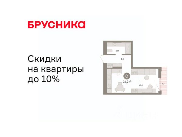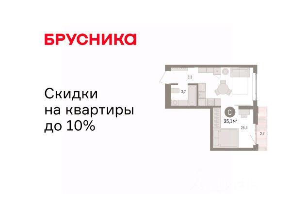 Студия в квартале "Траектория". Особенности планировки: балкон, предчистовая отделка.