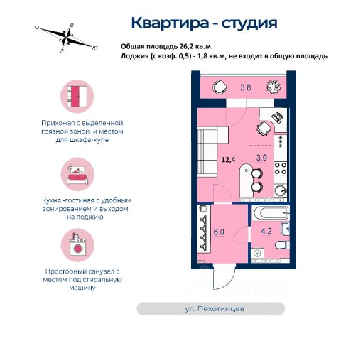 ЖК "Абрикос", расположен в районе Новая Сортировка по адресу ул. Софьи Перовской, д. 106а. Дом сдан. Продажа квартир осуществляется по договору купли-продажи от застройщика. Познакомьтесь с "Абрикосом" поближе. Мы создали его таким, чтобы вы были довольны всем, а ваша жизнь в нём была как сам этот фрукт: свежей, сочной, яркой и солнечной. Район Тихий микрорайон Новая сортировка на Северо-западе Екатеринбурга. 20 минут пешком до парка "Таганская слобода" 15 минут на машине до кольцевой дороги, а до центра — полчаса даже по пробкам 10 минут на машине до ТЦ "Карнавал" 7 школ и 11 детсадов поблизости 6 продуктовых магазинов рядом Двор Во дворе хорошо должно быть всем: детям — площадки по возрасту, взрослым — прогулочные дорожки. Но это не всё. Концепция "Двор без машин", когда можно заехать только для разгрузки и погрузки Стритбольная площадка Вместительная парковка вокруг ЖК Закрытая территория с пропускной системой Круглосуточное видеонаблюдение и освещение территории в ночное время Подъезды Не подъезд, а парадная. Так говорят в Петербурге, но и в "Абрикосе" это слово приходит в голову. Просторные холлы с витражами и достойной отделкой. Доступ в подъезды на уровне земли — без барьеров Домофоны — в тёплых остеклённых тамбурах В каждом подъезде — грузопассажирский лифт Помещения для колясок и самокатов на 1 этаже Удобная навигация с номерами этажей и квартир Планировки Наш подход к проектированию называется "Разумные метры". Это значит не только исходить из площади, но и учитывать число жильцов и их потребности. Объединённые кухни-гостиные для простора и общения 3D-модели с вариантами обстановки Отказ от бесполезных "мёртвых" зон Отделка В ЖК "Абрикос" мы позаботились о чистовой отделке, чтобы ваш переезд прошёл быстро и не вызвал лишних хлопот. На полу в комнатах, прихожих и кухнях — прочный водостойкий ламинат, в санузлах — керамическая плитка, потолки — натяжные Межкомнатные двери и усиленная сейф-дверь на входе в квартиру В санузлах установлены раковины и унитазы, а во всей квартире — розетки и выключатели Радиаторы с терморегуляторами и горизонтальной разводкой, двухкамерные стеклопакеты с приточными клапанами вентиляции Телеметрические счётчики на свет, тепло и воду Продам квартиру-студию в микрорайоне Новая Сортировка в городе Екатеринбург.