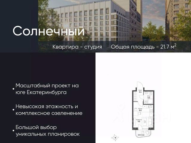 Продается квартира 716, по адресу Свердловская область, г. Екатеринбург, ул. Чемпионов, корпус Солнечный, блок 11.1 в Солнечный на 12 этаже, с площадью 21.7 м2.