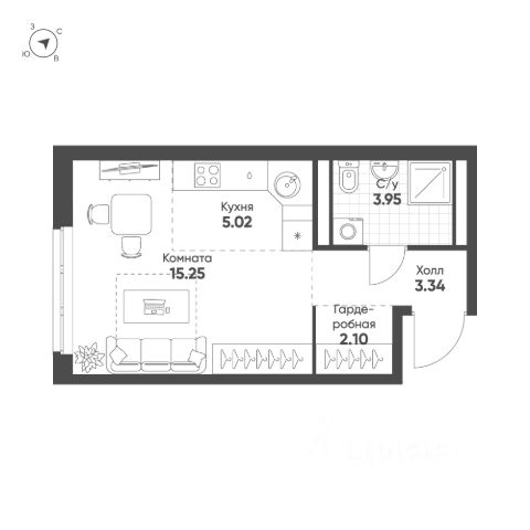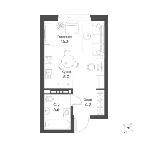 Просторная кухня-гостиная 21,5 кв м, идеальна для незабываемых семейных вечеров и встреч с друзьями.