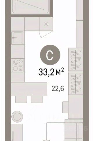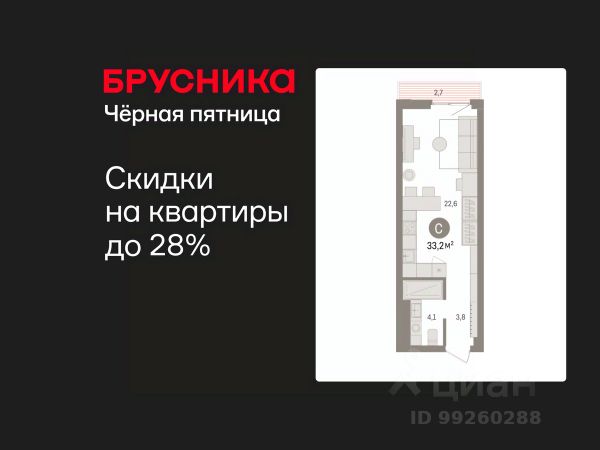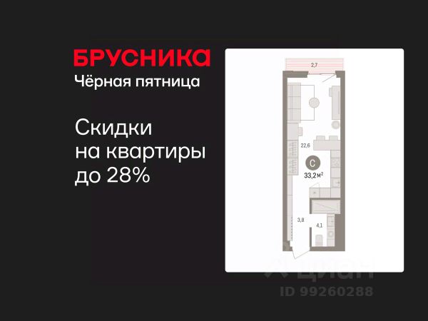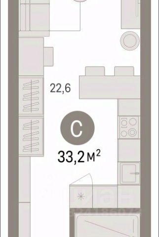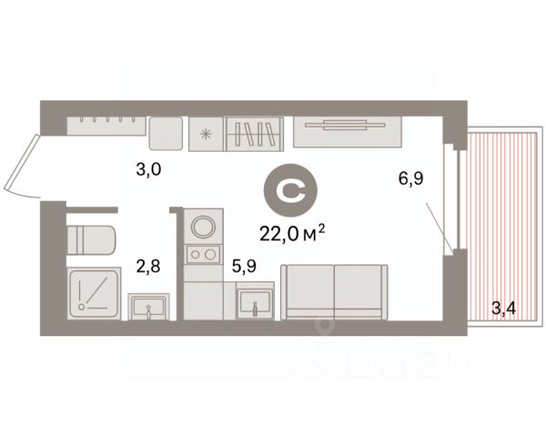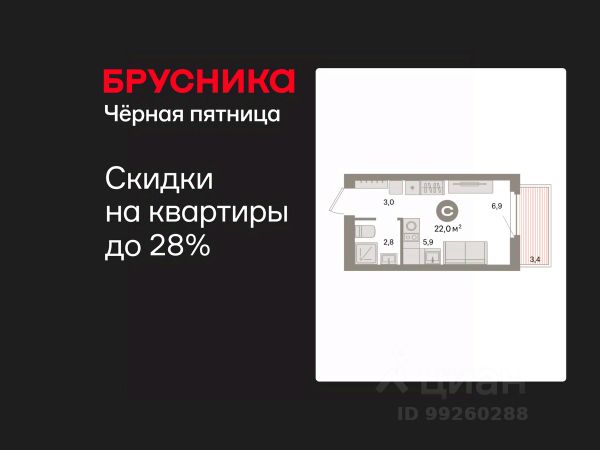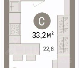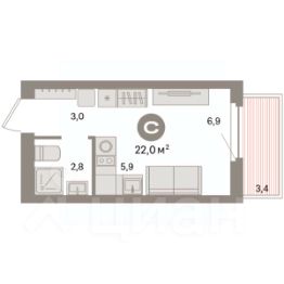 Продается однокомнатная студия с предчистовой отделкой в ЖК "Квартал Траектория" на 11 этаже. Общая площадь: 30.4 кв.м., площадь гостиной 22.1 кв.м., из которых 5 кв.м. выделено под кухонную зону. Все окна выходят на одну сторону. В квартире один балкон, один совмещенный санузел. Высота потолков 2.82 м.
