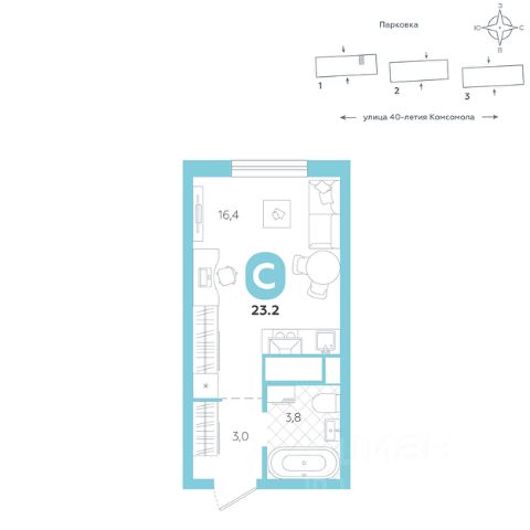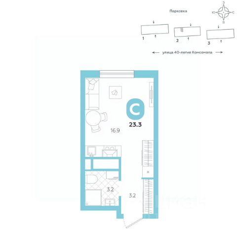 Эргономичная квартира-студия с лоджией и перспективой роста в цене — отличный выбор для тех, кто делает первые шаги к самостоятельной жизни. Общая площадь квартиры 21,8 кв.м., и ее умная планировка позволяет создать атмосферу, полностью отражающую ваши стиль и предпочтения. Квартира располагается в ЖК "Комсомольский" — жилом комплексе комфорт-класса. Здесь вы будете наслаждаться беззаботной жизнью, ведь ваш дом — воплощение практичности, безопасности и надежности. Для удобства предусмотрены колясочные на первых этажах домов, где можно оставить велосипеды и коляски в тепле. За безопасность отвечают система электронных ключей и видеонаблюдение. Еще здесь собственная котельная, поэтому в доме всегда будут горячая вода и оплата счетов только за фактически потребленное тепло. ПРЕИМУЩЕСТВА ЖК Красивые и функциональные парадные с мягкой и стильной зоной для отдыха, книгообменником, встроенными почтовыми ящиками и нишами для сумок Колясочные с доступом по ключу IP-домофоны Тихие лифты с плавным ходом О ПРОЕКТЕ ЖК "Комсомольский" строится в спокойном Кировском районе Екатеринбурга в границах улиц Сыромолотова — Рассветная — 40-лет Комсомола. Комплекс состоит из трех домов переменной этажности, которые выделяются динамичными линиями, выразительными фасадами и стильными лоджиями. ЛОКАЦИЯ Всё, что необходимо для повседневной жизни, находится недалеко от дома: школы, детские сады, продуктовые магазины, фитнес-клубы. Дорога до центра города на машине займет всего 10 минут — достаточно повернуть с улицы 40-летия Комсомола на улицу Владимира Высоцкого. Рядом с этим перекрестком начинается "Тропа здоровья" — большой терренкур вдоль "Каменных палаток". 10 мин до центра 3-4 минуты до школы No 82, гимназии No 176 4-5 минут до детских садов No 208, No 583, 266 20 мин до Свердловского областного медицинского колледжа и Центральной городской больницы No 7 В рамках стратегического развития района на первых этажах домов появятся коммерческие помещения, в которых откроются магазины и кафе. Следует учесть, что к 2030 году в Кировском районе планируется формирование регионального рекреационно-оздоровительного кластера, строительство ветки метро, расширение и модернизация старых промышленных зон социальной и бизнес-инфраструктуры, что приведет к созданию комфортной среды для жизни. Кроме того, в стратегию входит развитие Шарташского лесного парка как центра регионального и международного туризма. СПОСОБЫ ПОКУПКИ Ипотека: подберем выгодные условия в нескольких банках, чтобы вы могли выбрать лучшее Материнский капитал: можно использовать в качестве первоначального взноса Рассрочка: платите частями без % Сертификаты: позволяют оплатить часть стоимости квартиры О КОМПАНИИ "Паритет Девелопмент" — это современный и ответственный подход к реализации проектов в сфере жилищного строительства. Компания формирует среду, способную создать новое качество жизни для клиентов, поэтому каждый проект имеет свою философию