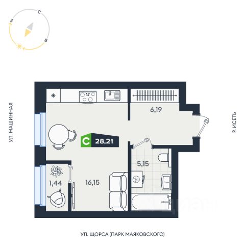 Продается студия, площадью 28.21 кв.м. на 17 этаже в строящемся Доме 8 ЖК бизнес-класса Клевер парк. Срок сдачи: III кв. 2027 года. Клевер парк - ваша будущая жизнь в одной из самых привлекательных локаций Екатеринбурга: между парком им. Маяковского и набережной Исети, всего в 6 минутах от центра. Собственная набережная, амфитеатр у воды и зеленое окружение создают здесь редкую для мегаполиса атмосферу, в которой свободно дышится. Высокий уровень комфорта создают сервисная служба, фронт-офис 24/7 с лобби и кафе, подземный паркинг, двор-парк 2,5 га с многоуровневым освещением, детскими площадками и зонами отдыха с декоративным прудом. Инфраструктура впечатляет: гастробульвар, фитнес-центр с бассейном, частный детский сад и две школы, творческие студии. Здесь кипит жизнь. В финальном доме квартала резидентов ждут эксклюзивные квартиры с гардеробными, мастер-спальнями, теплой лоджией, панорамным остеклением, открывающим завораживающие виды, и обилием дневного света.