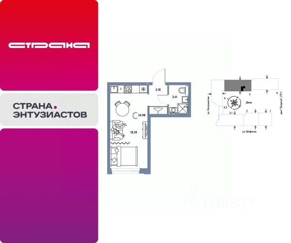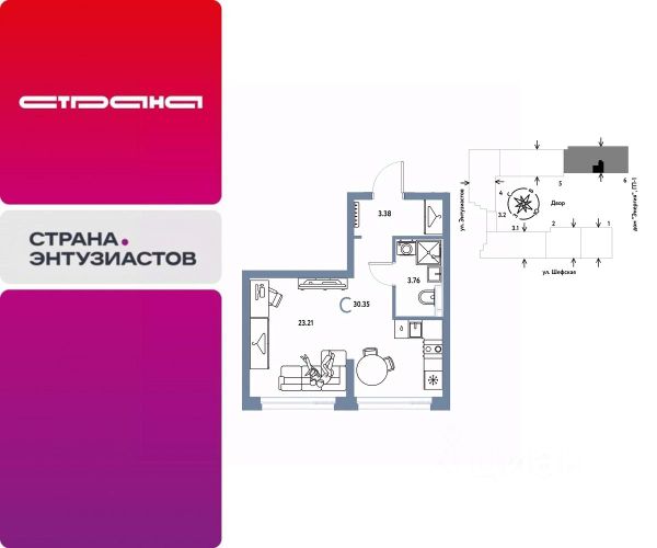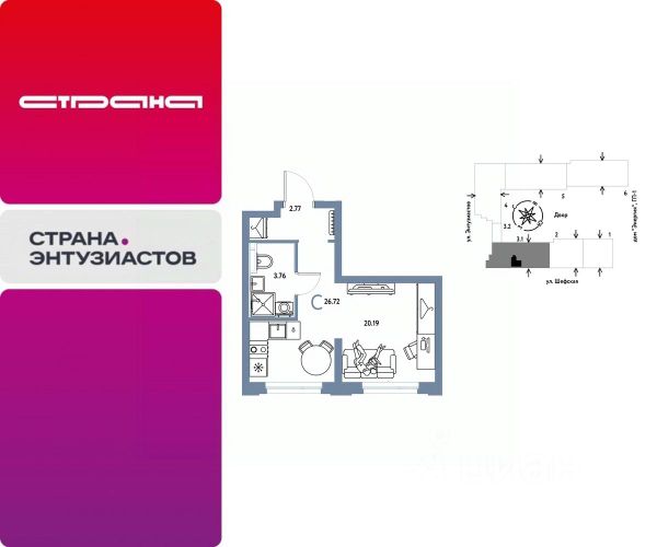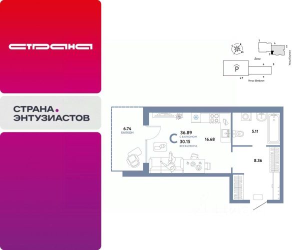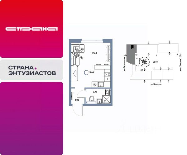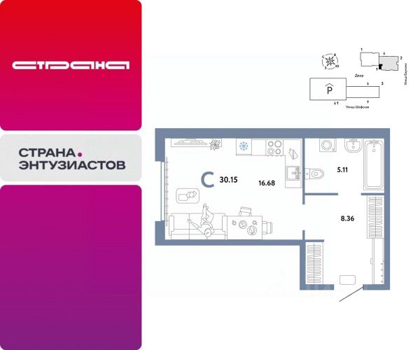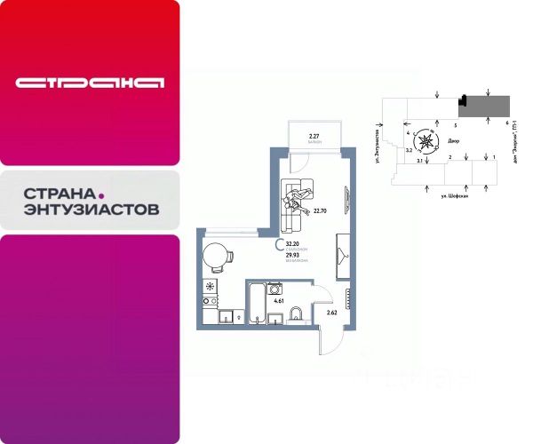 Новая квартира в ЖК "Страна.Энтузиастов" напрямую от федерального застройщика "Страна Девелопмент". Продается 1комнатная квартира на 4 этаже от застройщика Страна Девелопмент. Площадь квартиры 32,2 кв. м. ЖК "Страна.Энтузиастов" Жилой комплекс "Страна.Энтузиастов" — это уютный квартал на севере Екатеринбурга, в центре Эльмаша. Здесь органично соединяются природа и умные технологии. Главной точкой притяжения станет "зелёная" городская гостиная, которая объединит жителей района. А значимой социальной особенностью проекта выступит муниципальный детсад на 100 мест. Преимущества • Городская гостиная для отдыха жителей и гостей — мы вдохновились энергией народной стройки и огромным желанием сделать свой дом лучше и уютнее. Ведь в середине ХХ века на Эльмаше кипела заводская жизнь, лился металл, инженеры и рабочие. • У каждого дома свой приватный двор окружен "зеленью", которая будет цвести весь год. Двор мы разделили на несколько зон: для детей младшего и среднего возраста, релакс пространство с гамаками и подвесными креслами, спортивная зона с воркаут и настольным теннисом. • На первых этажах находятся торговые и офисные помещения. В них располагаются полезные сервисы для жителей: рестораны, магазины, пекарни, кофейни, аптеки, салоны красоты и пункты выдачи заказов. Для каждого помещения спроектирован отдельный вход, витражное остекление и место под вывеску. Отделка Квартиры сдаются с предчистовой отделкой: произведена разводка электричества и отопления, выполнена стяжка пола, стены выровнены "под маяк", установлены розетки, выключатели и радиаторы. Дизайнерская отделка При покупке квартиры в ЖК "Страна.Энтузиастов" можно включить стоимость ремонта в ипотеку. Пять вариантов на выбор: хлопковая нить, серый шторм, белый камень, шалфей, голубой вереск. Способы покупки Сотрудники "Страна Девелопмент" будут сопровождать вас на каждом этапе сделки, помогут получить одобрение по ипотеке или снизить ежемесячный платеж. - ипотека - рассрочка - с использованием материнского капитала -100% оплата наличными