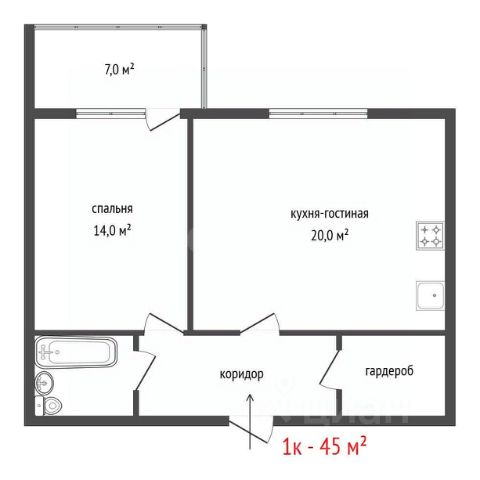 Квартира: высота потолков 2.8 м. комната 21.8 квм, кухня 14.9 квм, на просторную лоджию два выхода (из комнаты и из кухни), совмещённый санузел, просторный коридор оснащён удобными и вместительными шкафами-купе. Окна квартиры выходят во двор на ул. 8 марта (Юго-Запад).