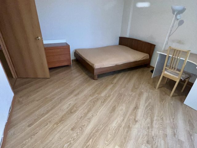 В квартире выполнен косметический ремонт: санузел отделан керамической плиткой, на стенах комнаты и кухни обои на полу ламинат.