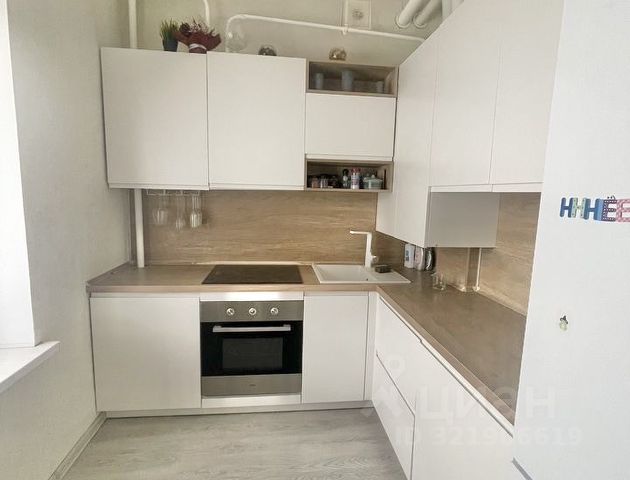 подобранным кухонным гарнитурном и встроенной бытовой техникой