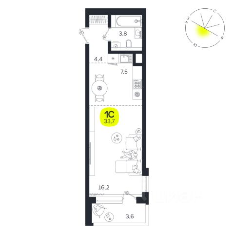 Заезжай и живи! Квартира-студия в микрорайоне Вторчермет в городе Екатеринбург.
