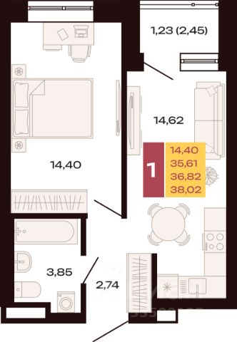 Однокомнатная квартира с предчистовой отделкой в ЖК "Соната Парк" на 13 этаже. Общая площадь: 45.12 кв.м., жилая: 12.31 кв.м., площадь просторной кухни-столовой: 15.86 кв.м. Квартира - распашонка, без проходных комнат, окна выходят на paзные стороны дома. В квартире один балкон, один совмещенный санузел. Высота потолков 2.72 м.